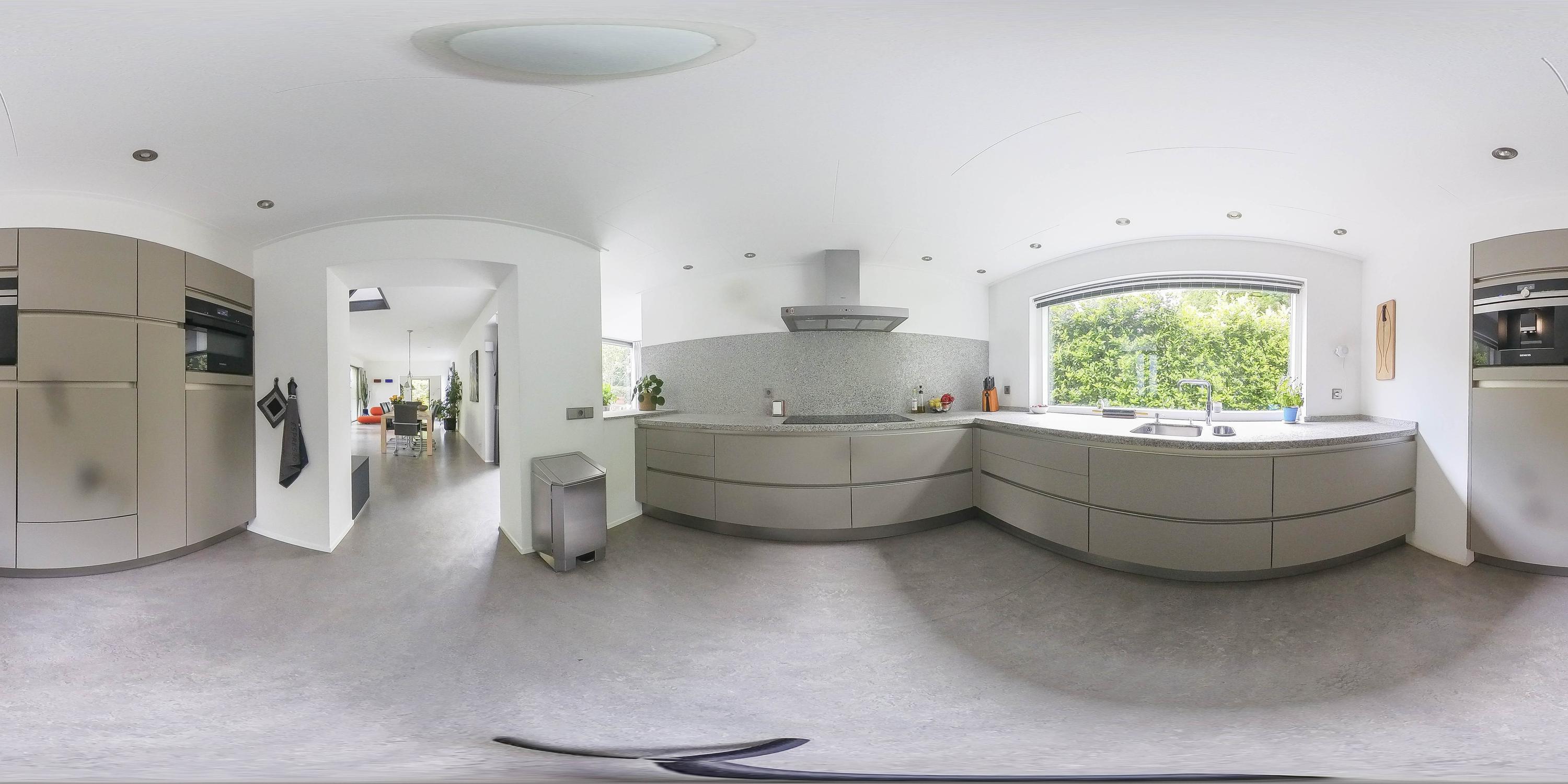De half open greeploze Siematic keuken is een droom voor elke thuiskok. De keuken is voorzien van een gebrand granieten blad, spoelbak met een Fusion Quookerkraan ,afzuigkap, een 5-pits inductie kookplaat (11kW) en een wandopstelling met Home Connect combi-oven, twee koelkasten, een volautomatische koffiemachine met vele