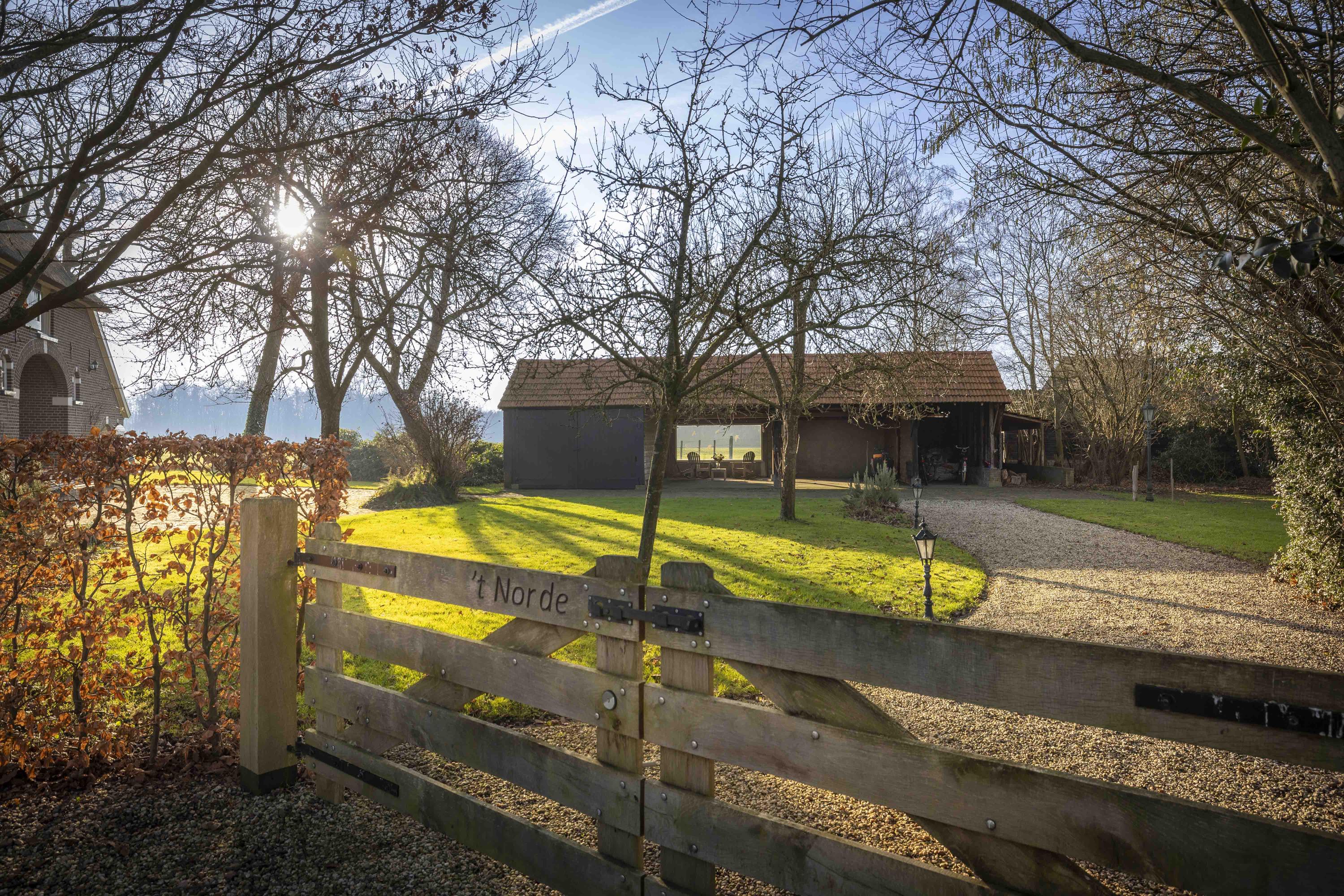 ’t Norde is even imponerend als mooi; een klassieke, volumineuze hallenhuis T-boerderij uit 1863, die wordt omringd door een heerlijke tuin. Het huis heeft al meerdere voorgangers op deze locatie gehad, met de oudste vermelding daterend van 1476. Het huidige huis, door de gemeente Bronckhorst als gemeentelijk monument aangemerkt, werd in het afgelopen decennium flink gemoderniseerd, waarbij zelfs 'baden en slapen' op de begane grond tot de mogelijkheden behoort. De structuur werd - onder architectuur - de 21ste eeuw binnengeloodst, met de toepassing van dakkapellen en de transformatie van de deel tot riante woonruimte. En, niets went als ruimte om je heen: dit huis heeft er een overvloed aan, met een woonoppervlak van 407 m², vijf ruime slaapkamers en drie badkamers, en gezeten op een perceel van 2.877 m².