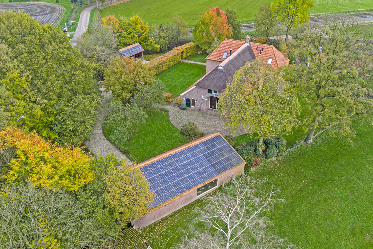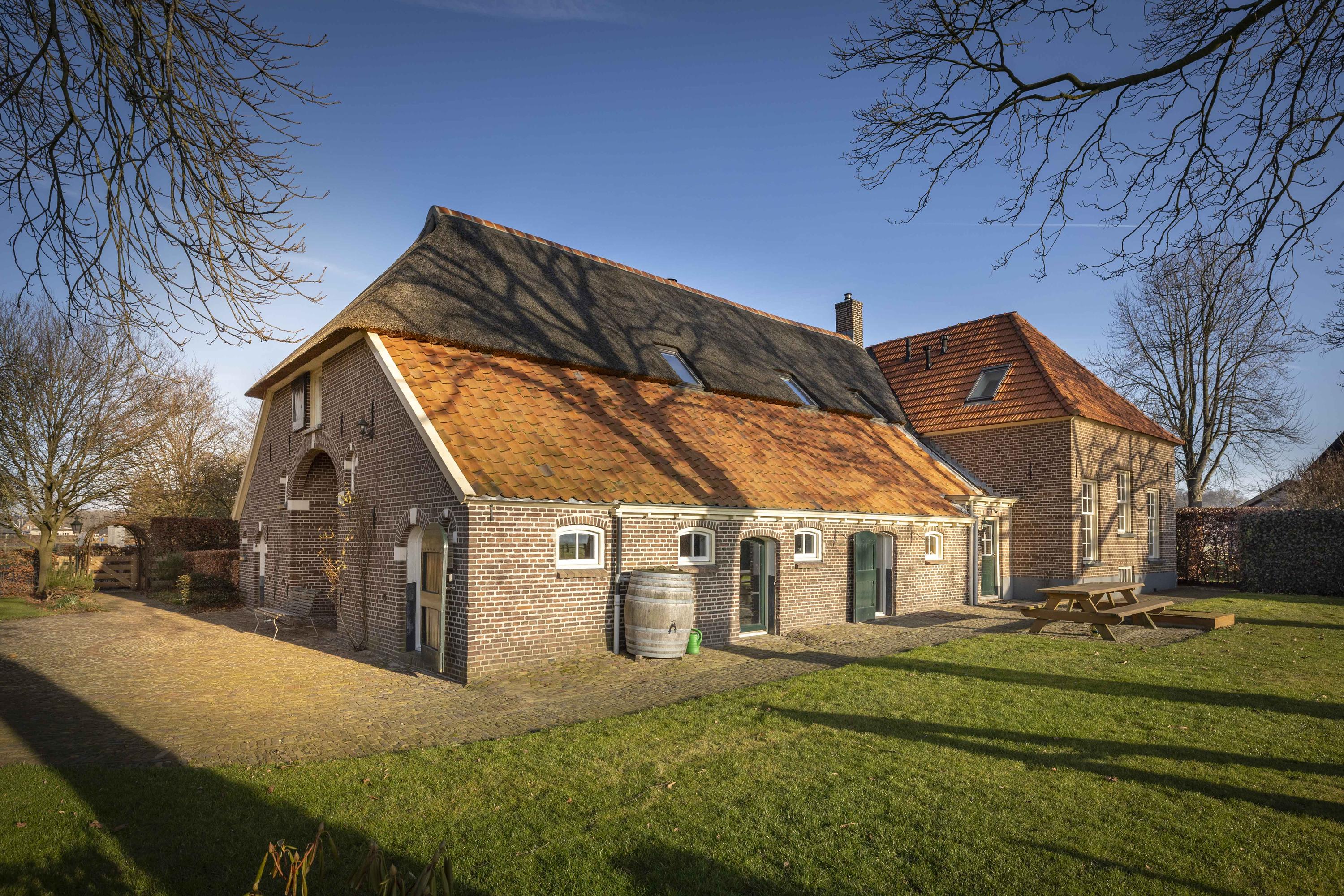 In de zon straalt het huis je tegemoet, met de frisse rode pannen, de strakke voegen, het in 2021 vernieuwde geschroefde rietdak en al het fraaie houtwerk dat dik in de lak zit. Ondanks haar lange historie is Erve ’t Norde ook onder de motorkap helemaal bij de tijd: de huidige bewoners hebben de boerderij van top tot teen verduurzaamd, met o.a. een dik isolatiepakket, HR++-glas, 45 zonnepanelen en een super efficiënte leemkachel, waarmee is ze klaar voor de volgende 163 jaar.